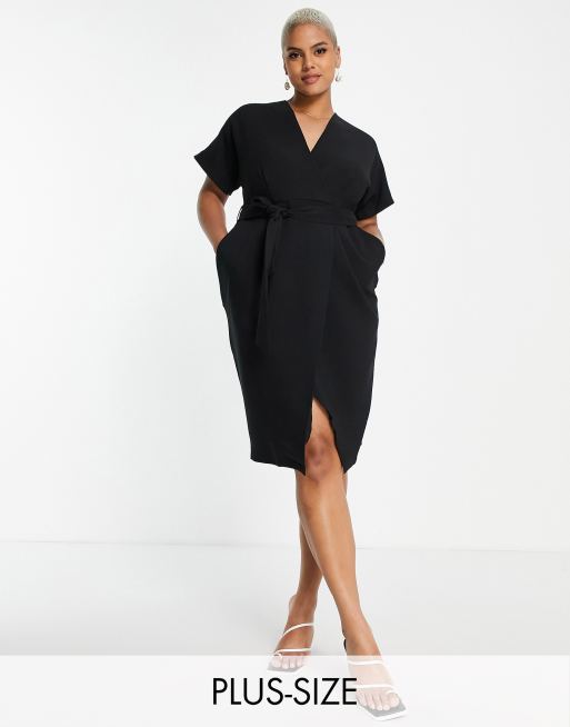 Vestido negro cruzado con mangas estilo kimono de Closet London Plus