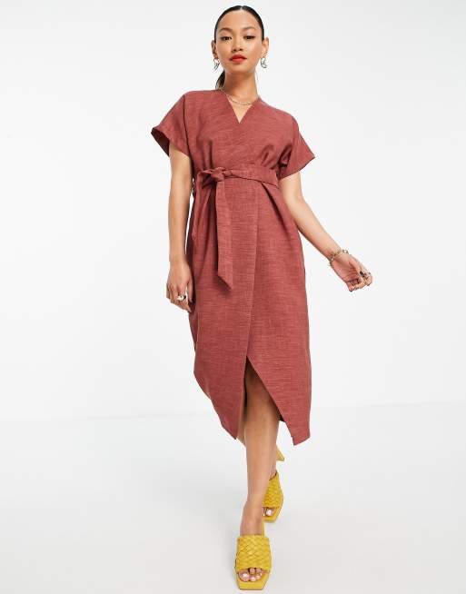 Vestido midi marrón con diseño cruzado y anudado de Closet London