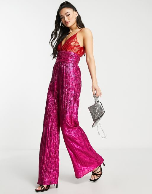 Mono largo metalizado con diseño color block de pernera ancha en contraste exclusivo de Collective The Label