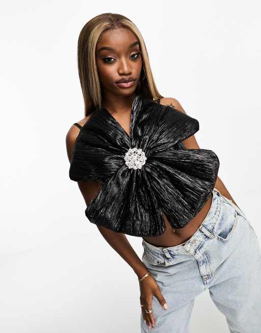 Top negro metalizado con detalle de strass exclusivo de Collective The Label
