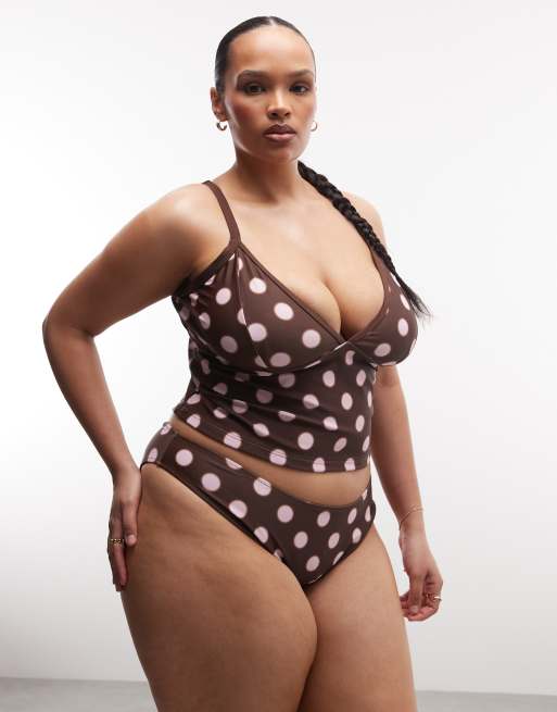 Braguitas de bikini marrones de pernera alta con estampado de lunares de COLLUSION Plus