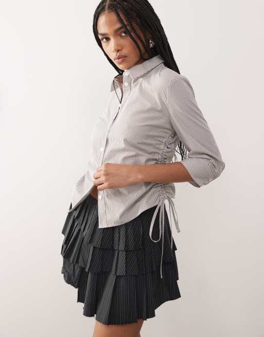 Camisa a rayas de manga 3/4 con lateral fruncido de COLLUSION
