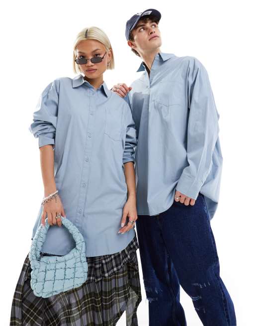 Camisa azul extragrande de algodón de COLLUSION Unisex