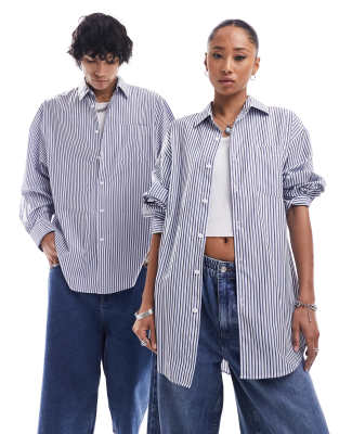 Camisa blanca y azul a rayas extragrande de COLLUSION Unisex