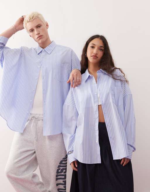 Camisa extragrande a rayas azules de COLLUSION Unisex