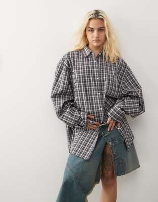 Camisa gris carbón a cuadros extragrande de COLLUSION