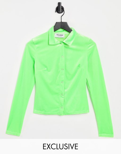 Camisa verde neón entallada de estilo años 90 de terciopelo de COLLUSION (parte de un conjunto)
