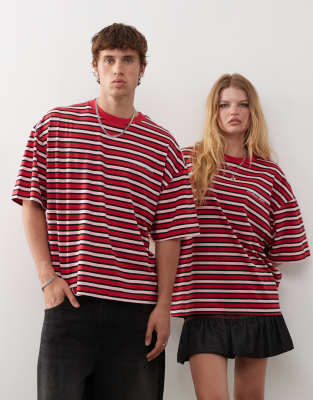 Camiseta a rayas rojas de corte skater con estampado de COLLUSION Unisex