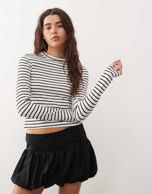 Camiseta ajustada de manga larga a rayas monocromáticas de COLLUSION