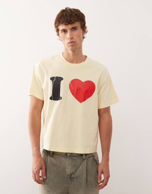 Camiseta amarilla de corte slim con estampado gráfico "I LOVE" de COLLUSION