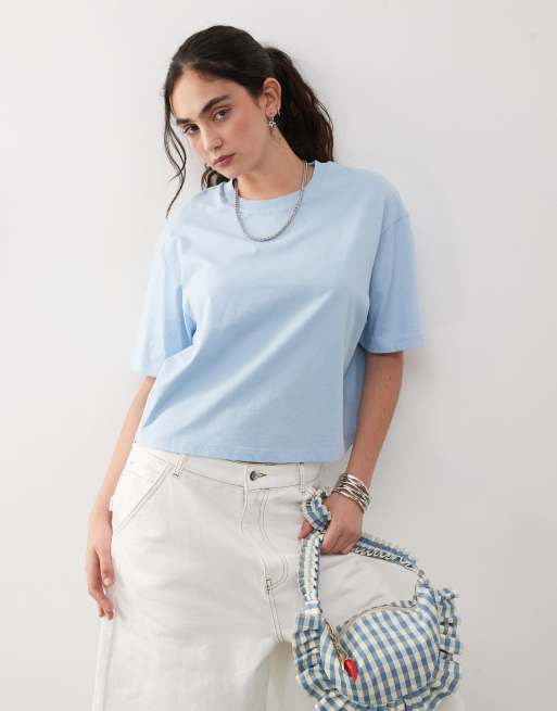 Camiseta azul de corte cuadrado y manga corta de COLLUSION