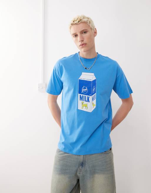 Camiseta azul de corte skater con estampado gráfico de leche de COLLUSION