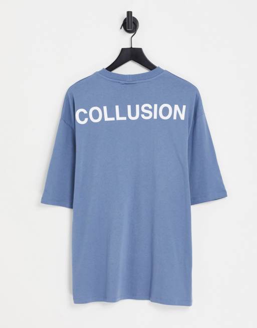 Camiseta azul empolvado extragrande con logo de COLLUSION