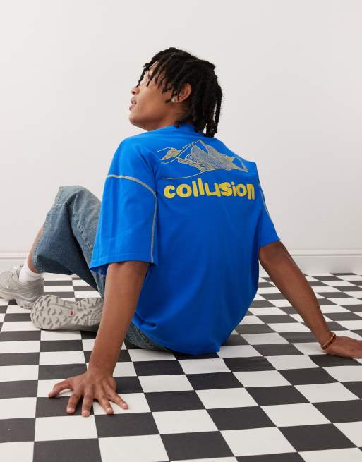 Camiseta azul extragrande con detalle de costuras planas de COLLUSION