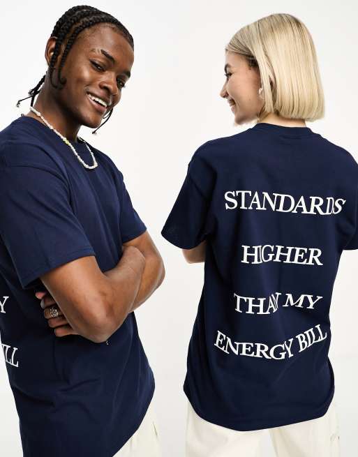 Camiseta azul marino con texto "High Standards" de COLLUSION Unisex