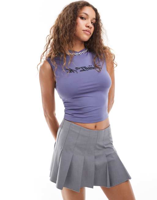 Camiseta azul sin mangas con cuello de pico y estampado gráfico de COLLUSION