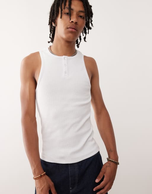 Camiseta blanca ajustada sin mangas con cuello panadero de COLLUSION