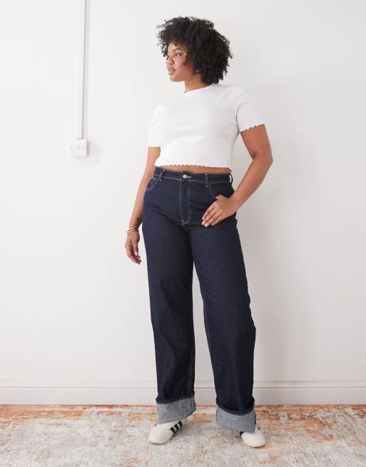 Camiseta blanca con bordes ondulados de canalé de COLLUSION Plus