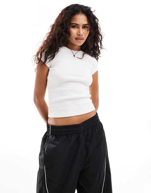 Camiseta blanca con diseño encogido de tejido texturizado de COLLUSION
