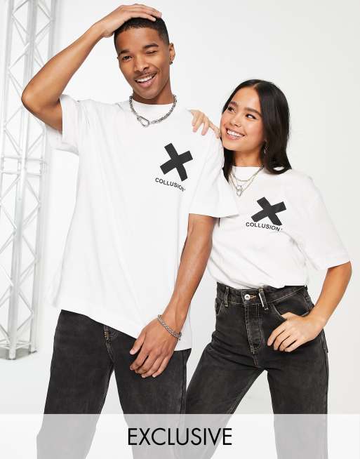 Camiseta blanca con logo de algodón de COLLUSION Unisex - WHITE