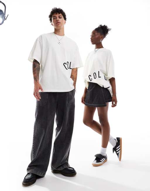 Camiseta blanca de corte skater con logo estampado de COLLUSION Unisex