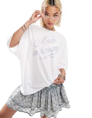 Camiseta blanca extragrande de estilo skater con detalle de strass de COLLUSION