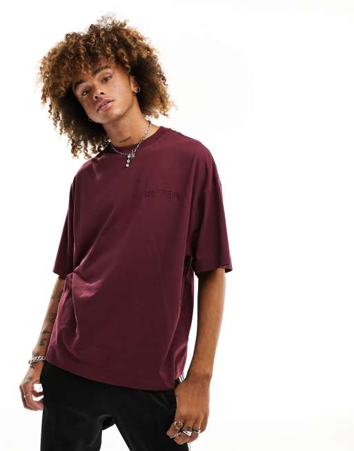 Camiseta burdeos de corte skater con bordado universitario de COLLUSION