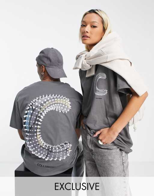 Camiseta color carbón con logo C de COLLUSION Unisex