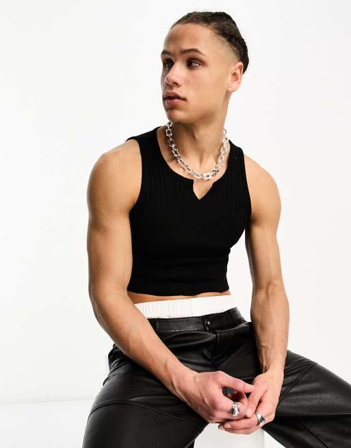 Camiseta corta negra sin mangas con muesca en el cuello de COLLUSION