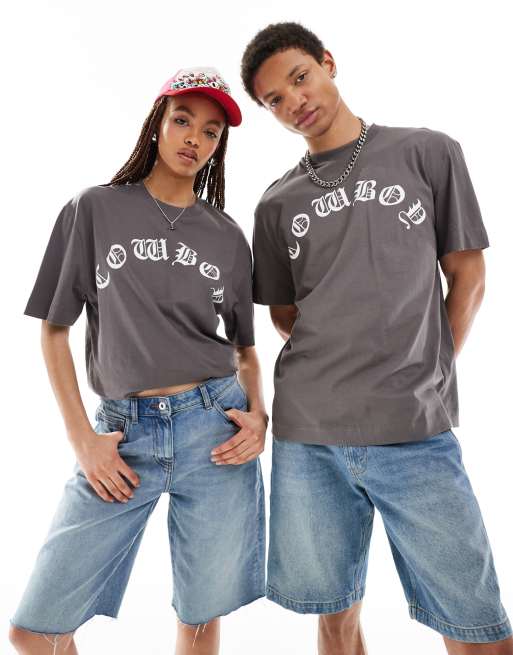 Camiseta gris carbón de corte skater con estampado de texto "Cowboy" estilo wéstern de COLLUSION Unisex