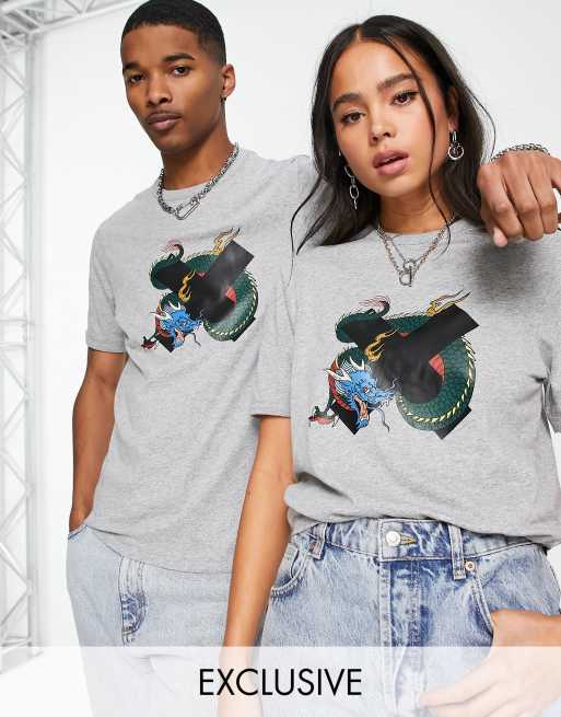Camiseta gris jaspeado con logo de COLLUSION Unisex