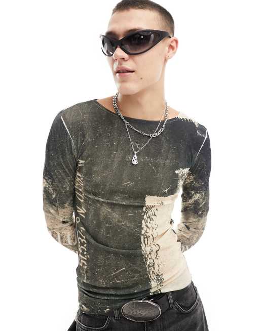 Camiseta multicolor estampada de manga larga con cuello barco de malla de COLLUSION