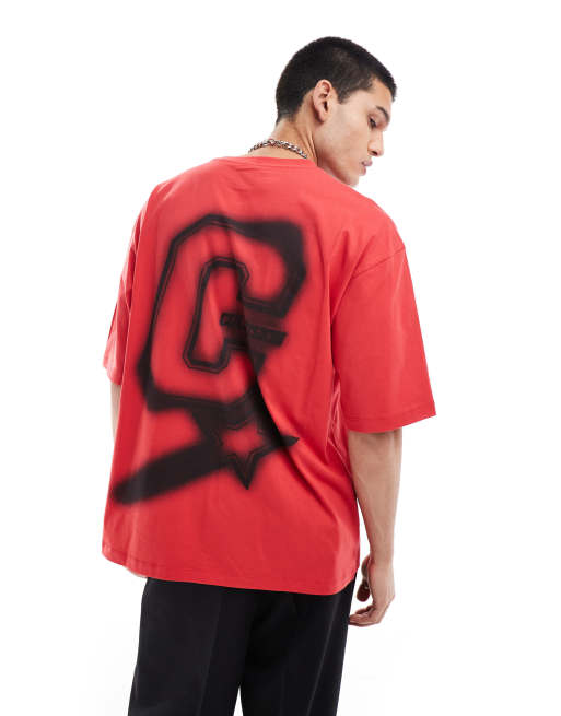 Camiseta roja de corte holgado skater con inicial del logo de COLLUSION