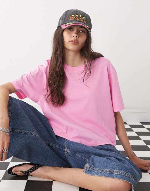 Camiseta rosa suave de corte cuadrado y manga corta de COLLUSION