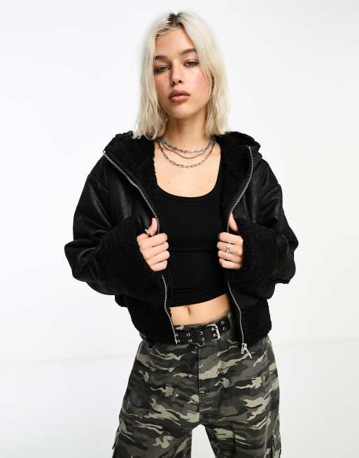Chaqueta de aviador corta negra de antelina de COLLUSION