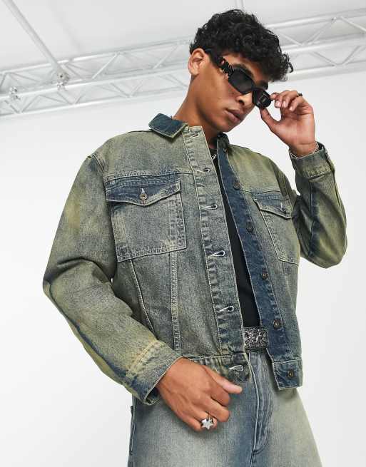 Chaqueta vaquera extragrande con lavado amarillo de COLLUSION (parte de un conjunto)