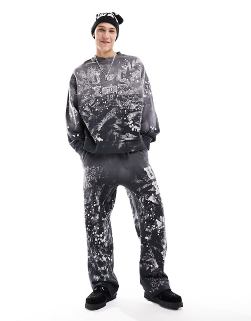 Conjunto azul de joggers y sudadera de estilo universitario con estampado de salpicaduras de pintura de COLLUSION