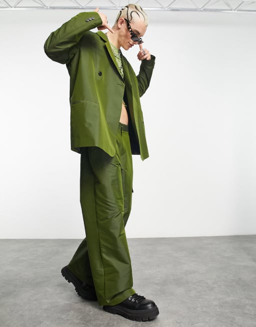 Conjunto caqui de pantalones de corte recto y americana extragrande de COLLUSION