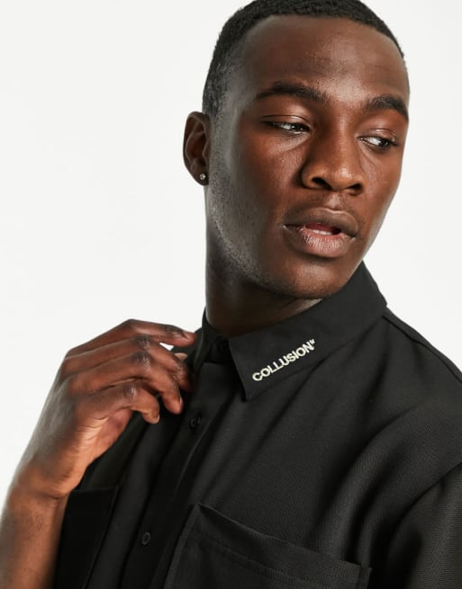 Conjunto negro de pantalones cortos y camisa de corte cuadrado con diseño bordado de COLLUSION