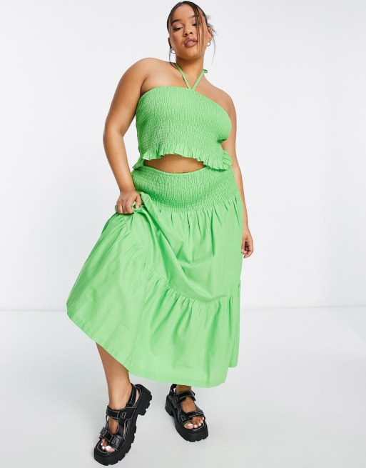 Conjunto verde de falda y top fruncido con cuello halter de COLLUSION Plus - MGREEN