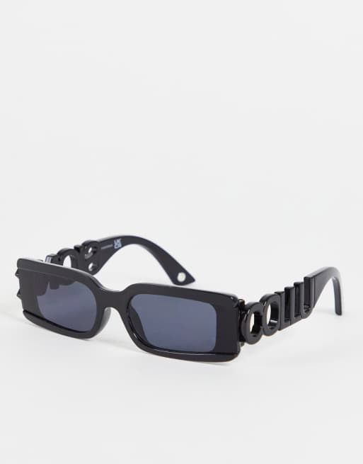 Gafas de sol negras rectangulares con diseño modelado del logo de COLLUSION Unisex