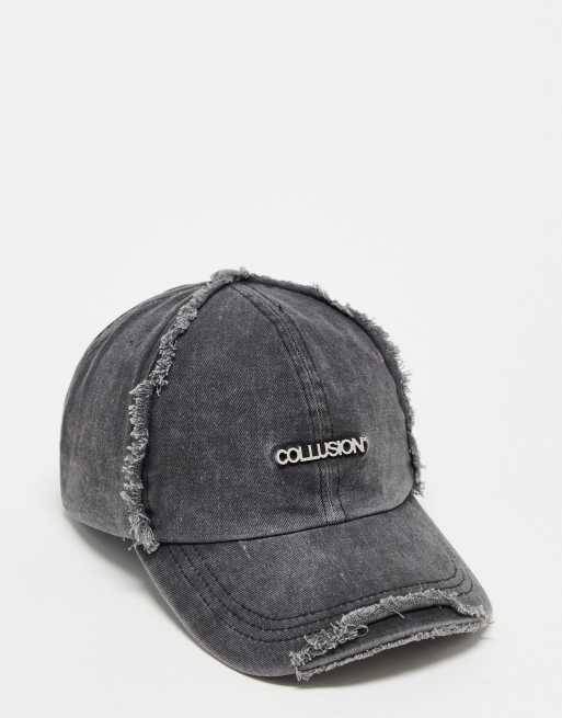 Gorra negra con lavado ácido, diseño desgastado y logo de COLLUSION Unisex