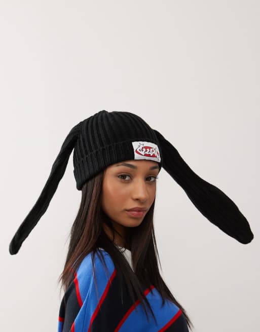 Gorro negro de estilo skater con detalle de orejas de punto de COLLUSION