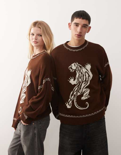 Jersey marrón chocolate con estampado gráfico de pantera de COLLUSION Unisex