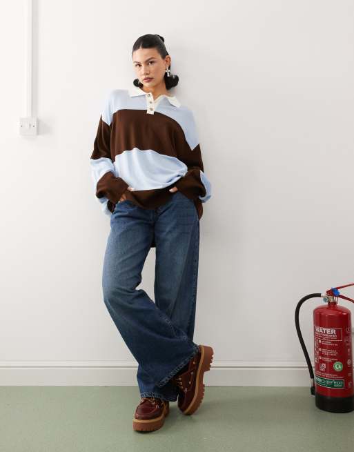 Jersey marrón estilo polo de rugby de punto de COLLUSION