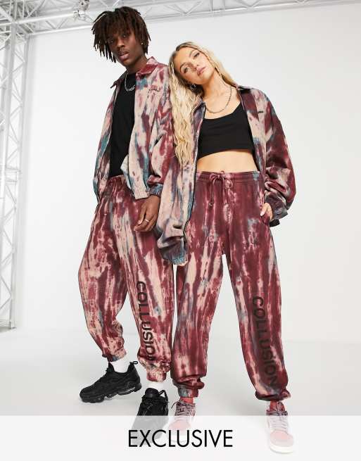 Joggers con efecto tie dye y logo estampado de COLLUSION Unisex (parte de un conjunto)