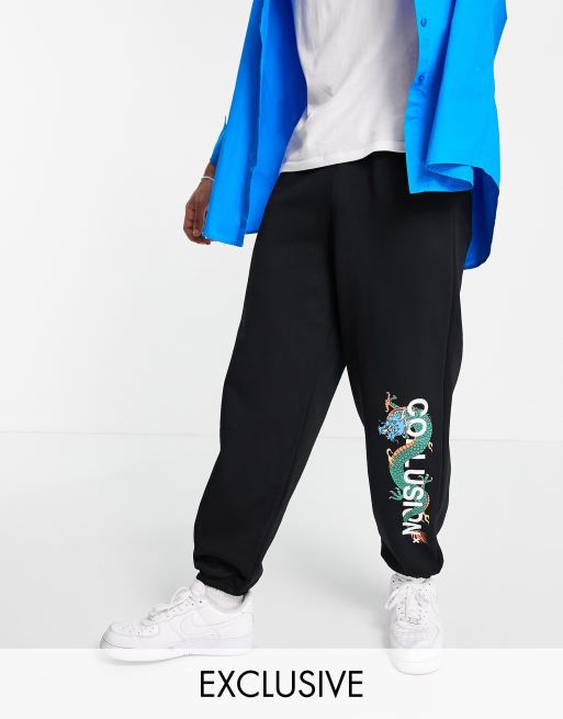 Joggers negros con estampado de logo y dragón de COLLUSION (parte de un conjunto)
