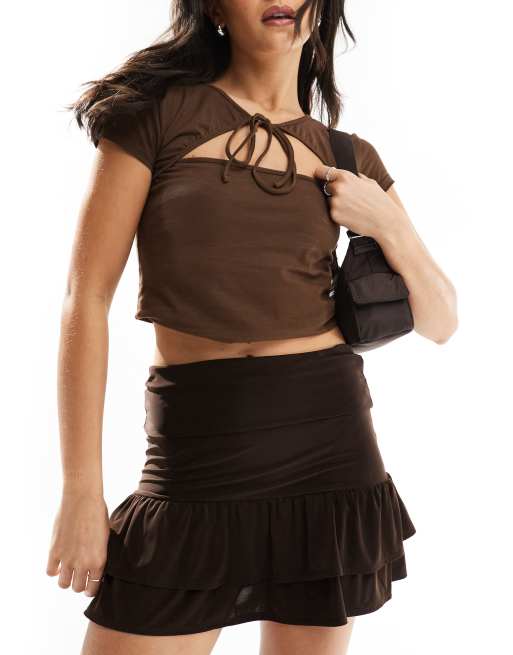 Minifalda marrón con detalle de volantes de COLLUSION