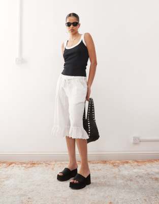 Pantalones capri blancos con bajo de volantes de COLLUSION