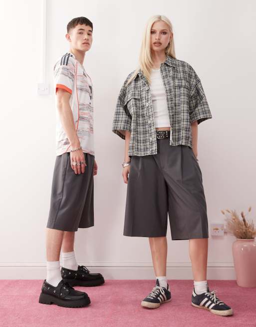 Pantalones cortos de sastre grises de corte alargado de COLLUSION Unisex